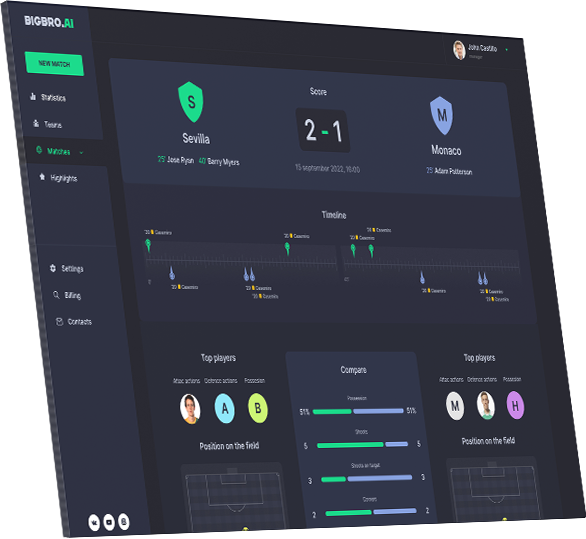 A convenient way to accumulate statistics on fitness and performance Save analysts’ time by automatically creating highlights based on specified parameters Increase the probability of player success through tracking