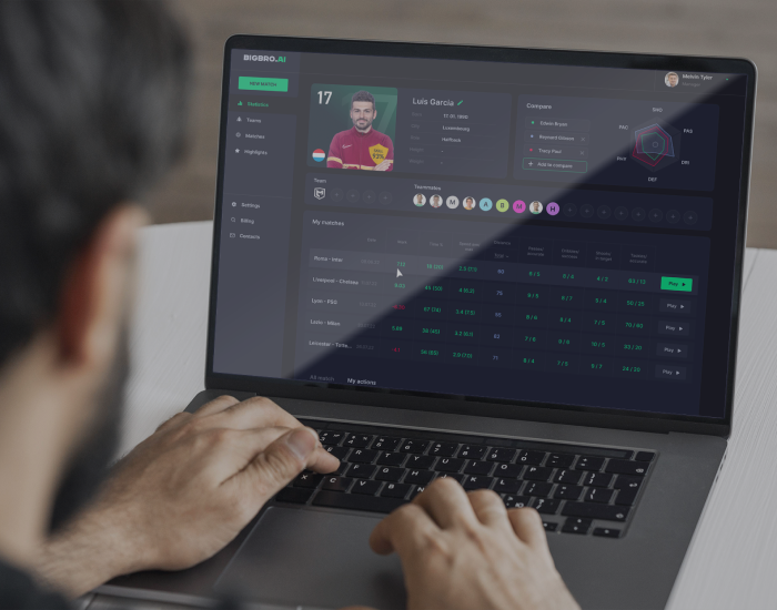 Active actions and movements are automatically visualized in the platform through heat maps and dashdoards. Using Big Bro AI, you can see beautiful visualizations of what players are good at, and what they need to work on. For example, you can see pass accuracy statistics of your central midfielder.
