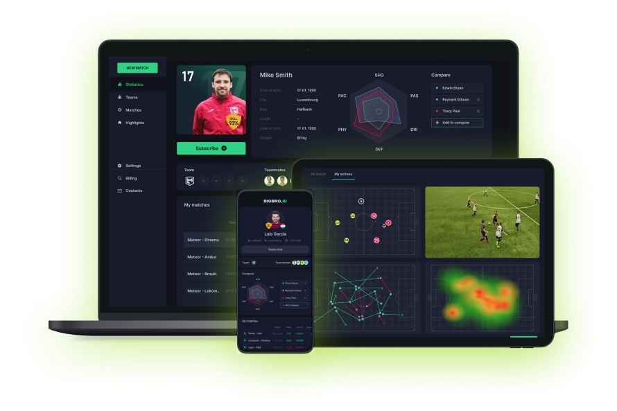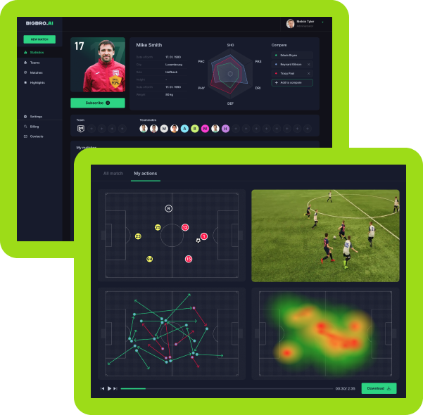 Detailed analysis for each team member, the effectiveness of each of their actions and personal recommendations for improving their performance. Our service will help coaches become better leaders and clubs find a path to victory in any competition.